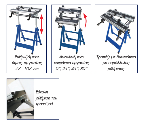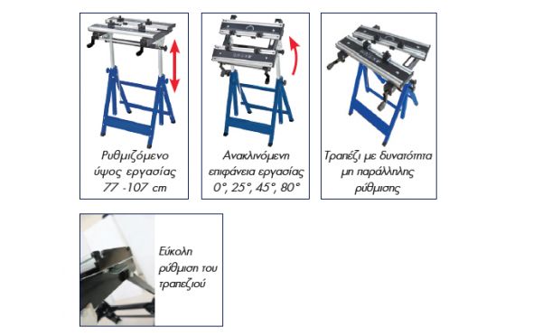 - Τραπέζι με δυνατότητα μη παράλληλης ρύθμισης.