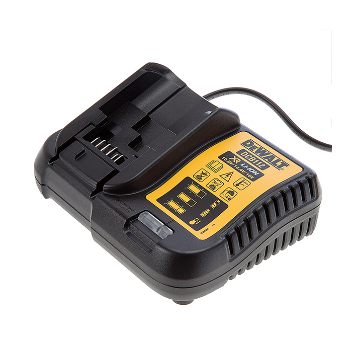 - Φορτίζει μπαταρίες συρόμενου τύπου XR Li-Ion DEWALT 10.8V, 14.4V, 18V.