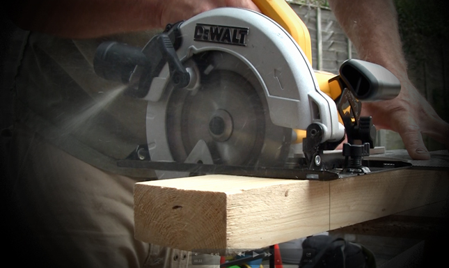 Φυσητήρας σκόνης απομακρύνει τα πριονίδια από την γραμμή κοπής