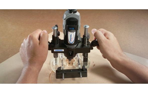- Μετατρέπει το εργαλείο σας Dremel σε μια βυθιζόμενη φρέζα για το φρεζάρισμα κύκλων, για εργασίες επιγραφών και σκαλισμάτων, διακοσμητικές ακμές και για φρεζάρισμα παράλληλα σε μια ακμή.
