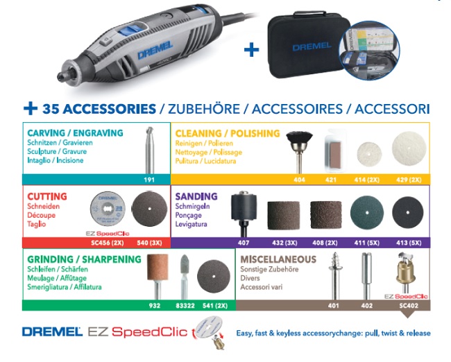 35 εξαρτήματα της Dremel (191, 404, 421, 414x2, 429x2, SC456x2, 540x3, 407, 432x3, 408x2, 411x5, 413x5, 932, 83322, 541x2, 401, 402, SC402)