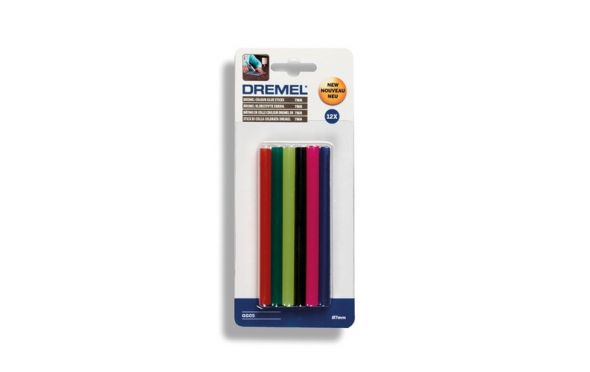 Επιτρέπεται η χρήση με το μοντέλο Dremel 920 και 930 (χαμηλή θερμοκρασία). Μπορούν να χρησιμοποιηθούν για ένα μεγάλο αριθμό διακοσμήσεων σε χαρτί, χαρτόνι, γυαλί, υφάσματα, ξύλο, πλαστικά, κ.α. Οι έγχρωμες ράβδοι μπορούν επίσης να χρησιμοποιηθούν για στεγανοποίηση και σταμπαρισμένες διακοσμήσεις. Μήκος : 100 mm Διάμετρος : 7 mm Θερμοκρασία λειτουργίας : 105-140 °C Ποσότητα : 12
