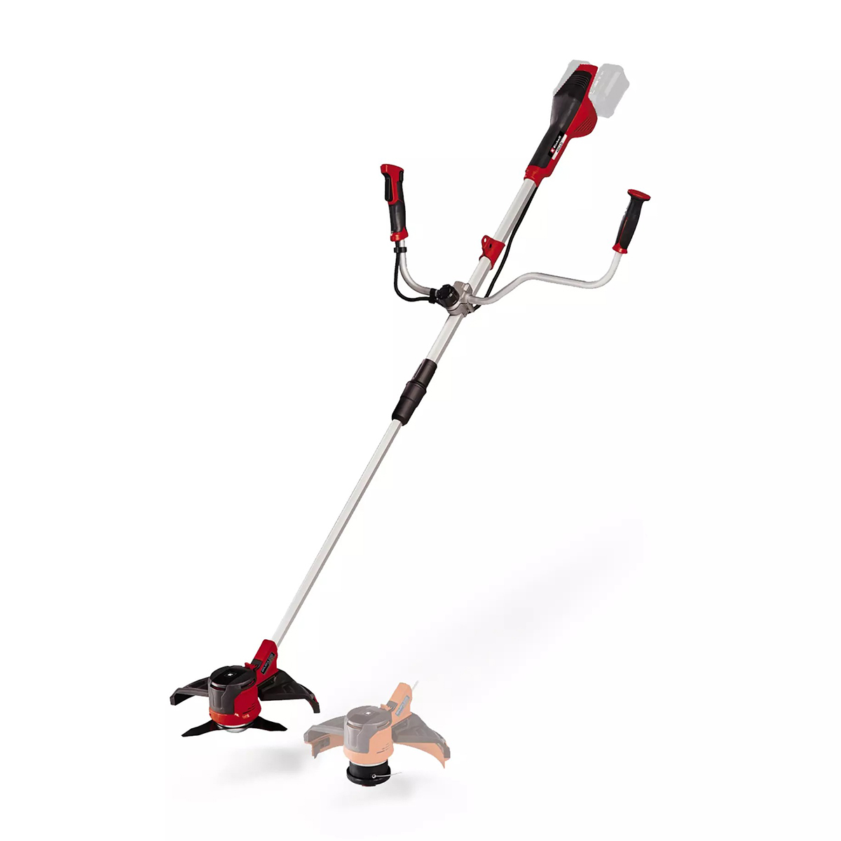 Κινητήρας χωρίς ψήκτρες.Διπλή λαβή τύπου ποδηλάτου.Διαιρούμενος άξονας.Ηλεκτρονική ρύθμιση ταχύτητας.Περιλαμβάνει στήριγμα τοίχου.Σύστημα κλειδώματος άξονα.Συνιστάται μπαταρία ≥2,5 Ah.Με ιμάντα δίσκο και κεφαλή μεσηνέζας.