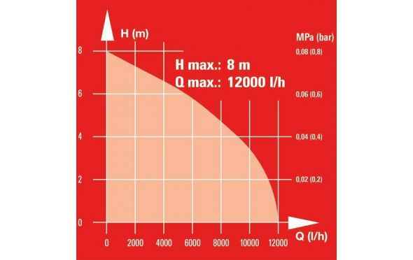 • Με ισχύ 500 watt, η αντλία αντλεί βρώμικο νερό σε μέγιστο βάθος εμβάπτισης από πέντε μέτρα και ύψος έως και οκτώ μέτρα.