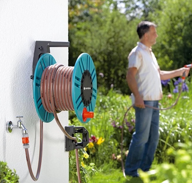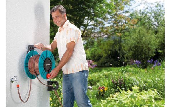- Το επιτοίχιο καρούλι λάστιχου GARDENA Classic παρέχεται εξοπλισμένο με ρακόρ.