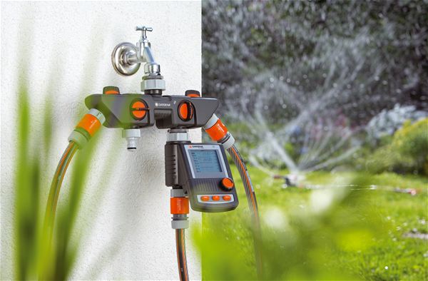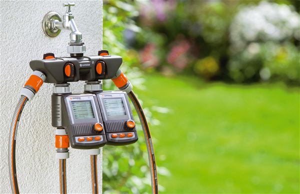 Η τετραπλή παροχή της GARDENA καθιστά δυνατή την ταυτόχρονη σύνδεση διαφόρων ποτιστικών συσκευών σε μία βρύση. Η ροή νερού μπορεί να ρυθμιστεί ξεχωριστά ή να απενεργοποιηθεί για κάθε έξοδο.