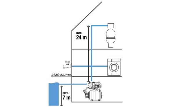 Μπορείτε να εξοικονομήσετε νερό, να μειώσετε τους λογαριασμούς νερού και να είστε πιο φιλικοί προς το περιβάλλον χρησιμοποιώντας την αντλία για να μεταφέρετε νερό στη βρύση του κήπου σας, το πλυντήριο ή για το καζανάκι της τουαλέτας σας.