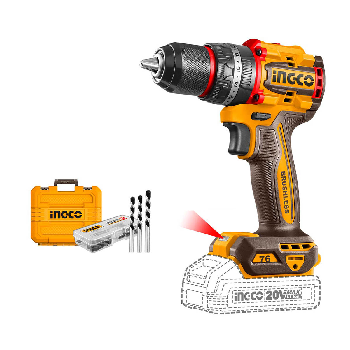 Ingco - CIDLI207681E Κρουστικό Δραπανοκατσάβιδο Μπαταρίας Compact 20V Li-Ion Brushless - Χωρίς Μπαταρία & Φορτιστή (Solo)