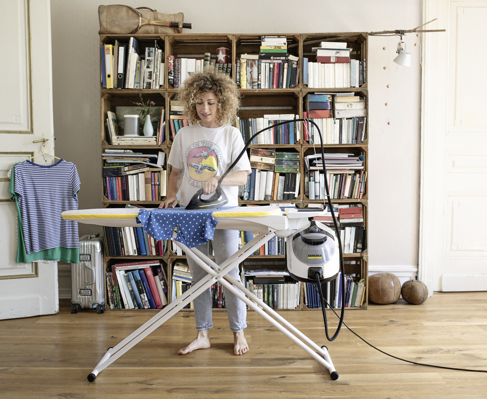 - Ο σχολαστικός καθαρισμός με τον ατμοκαθαριστή Kärcher απομακρύνει το 99,999% των ιών¹⁾ και το 99,99% όλων των κοινών οικιακών βακτηρίων²⁾ από τις τυπικές σκληρές επιφάνειες του νοικοκυριού. Και χάρη σε μια μεγάλη γκάμα διαθέσιμων εξαρτημάτων, μπορεί να καθαρίσει τέλεια λείες επιφάνειες, απορροφητήρες, γωνίες και κενά. Το ιδιαίτερα πρακτικό σίδερο πίεσης ατμού που επίσης περιλαμβάνεται επιταχύνει το σιδέρωμα κατά 50%. Η λειτουργία VapoHydro επιτρέπει επιπλέον την προσθήκη ζεστού νερού και την ευκολότερη απομάκρυνση και πλύση των επίμονων ρύπων.