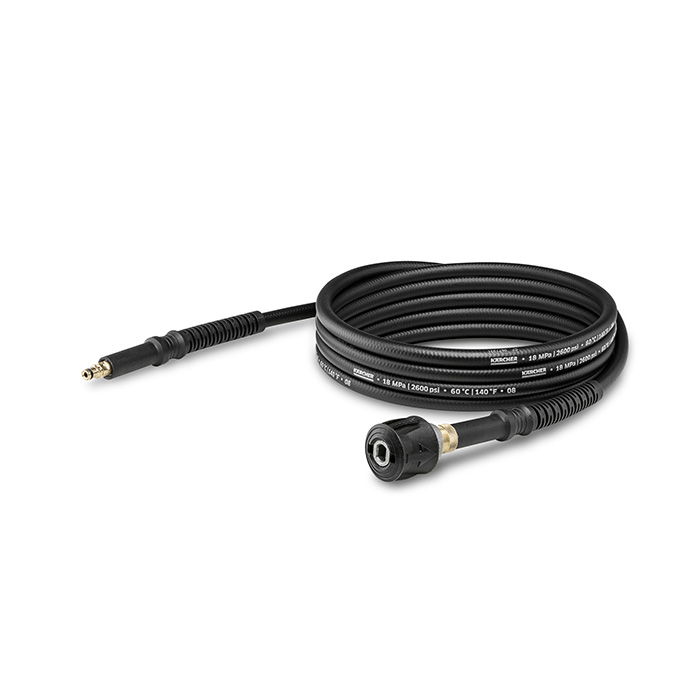 Υψηλής πίεσης εύκαμπτος σωλήνας προέκτασης για το μοντέλο πιστολιού «Best» με σύνδεσμο Quick Connect. Εύκαμπτος σωλήνας προέκτασης υψηλής πίεσης 6 m για μεγαλύτερη ευελιξία και χρήση με τα πλυστικά μηχανήματα υψηλής πίεσης. Απλώς συνδέστε το πιστόλι με τον σύνδεσμο Quick Connect και τον εύκαμπτο σωλήνα υψηλής πίεσης. Ανθεκτικός ενισχυμένος εύκαμπτος σωλήνας προέκτασης υψηλής ποιότητας DN 8 με υφασμάτινη πλέξη που δεν συστρέφεται, με ορειχάλκινο σύνδεσμο για ανθεκτικότητα Σωλήνας προέκτασης για πίεση έως 160 bar και θερμοκρασία έως 60 °C. Ο εύκαμπτος σωλήνας προέκτασης είναι κατάλληλος και για χρήση χημικών. Κατάλληλος για όλα τα πλυστικά μηχανήματα υψηλής πίεσης οικιακής χρήσης Kärcher των σειρών K2 – K7. Δείτε τα συμβατά μοντέλα.