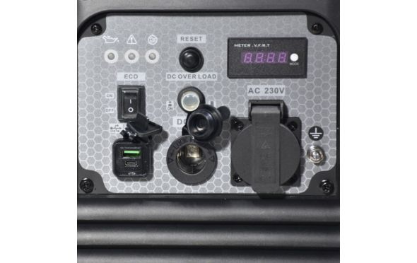 - Με οθόνη ενδείξεων τάσης - συχνότητας - χρόνου λειτουργίας.