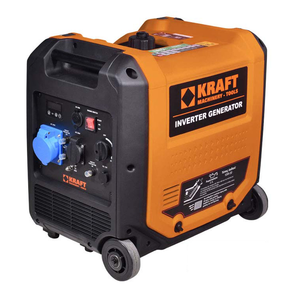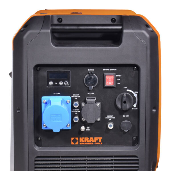 • Γεννήτρια τεχνολογίας inverter της KRAFT, ενσωματώνει ψηφιακό σύστημα ελέγχου της ποιότητας του ρεύματος, που διασφαλίζει τη σταθερή τάση (Volt) και συχνότητα (Hz).