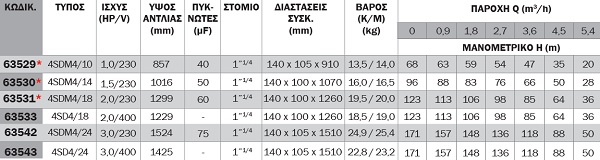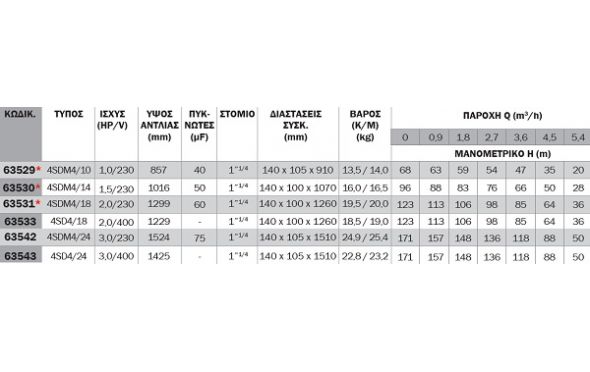- Ελάχιστη διάμετρος πηγαδιού 4" ( 100 mm )