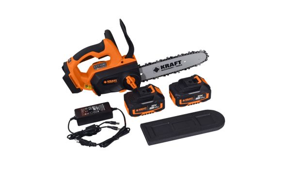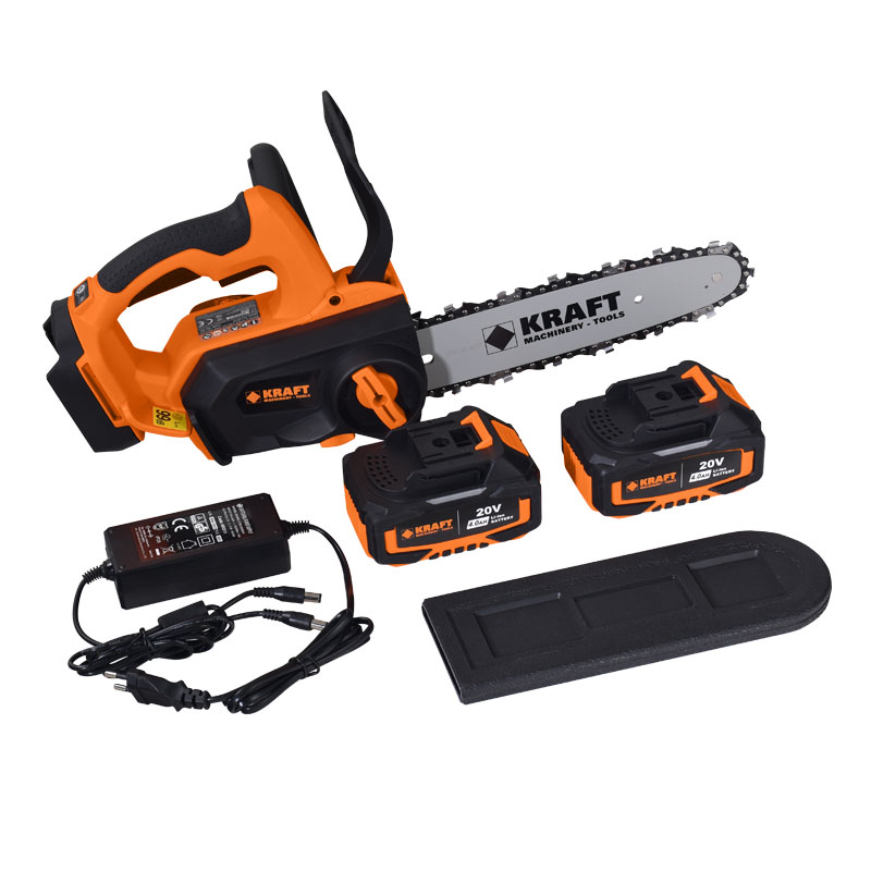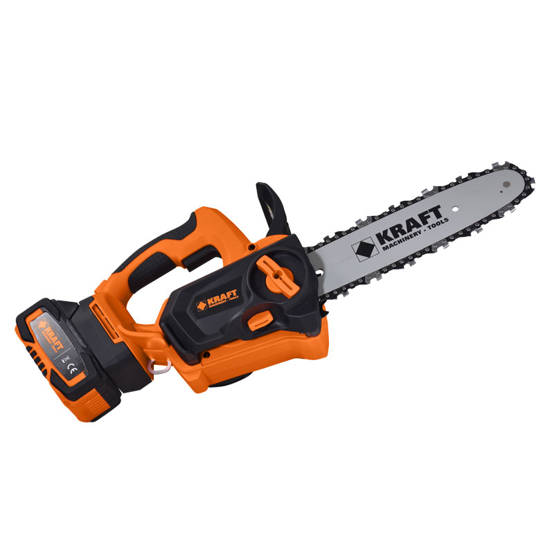 - Κλαδευτικό αλυσοπρίονο μπαταρίας KRAFT με αυτόματη λίπανση και μοτερ BRUSHLESS, κατάλληλο για άνετη χρήση τόσο στον κήπο όσο και στον αγρό καθώς είναι ευέλικτο, παραγωγικό με στιβαρή κατασκευή μεγάλη αυτονομία και γρήγορες κοπές.