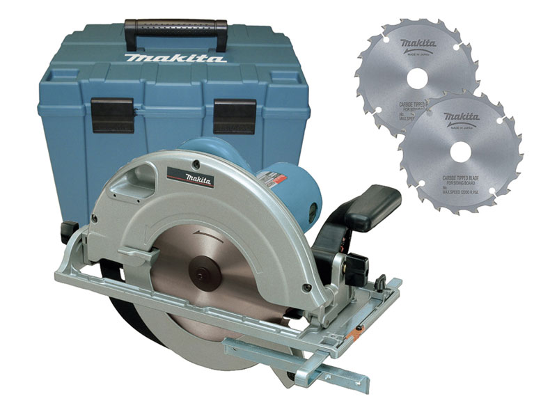 Δισκοπρίονο χειρός με πλάγιο βαθμιαίο οδηγό, κλειδί, 2 δίσκους Makforce και θήκη μεταφοράς.