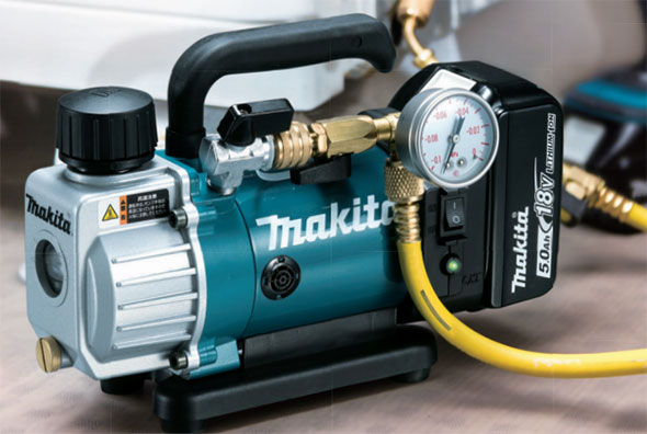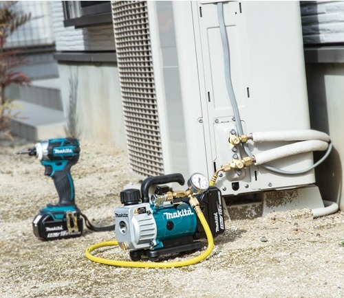 Ιδανικό για δημιουργία κενού σε κλιματιστικά. Βαλβίδα που εμποδίζει τη ροή επιστροφής λαδιού. Θύρα εξαγωγής με βαλβίδα για γρήγορη αλλαγή λαδιού. Δείκτης επιθεώρησης στάθμης λαδιού. Μέγιστος χρόνος λειτουργίας 50min με μια μπαταρία 18V-5.0Ah.