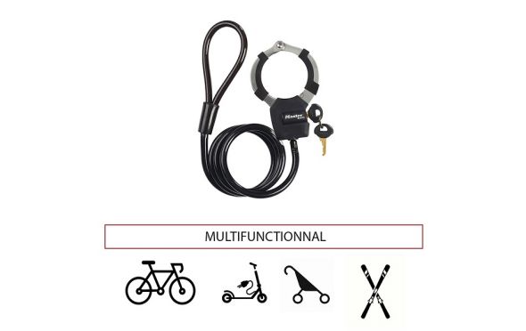Τύπου χειροπέδα για εύκολο κλείδωμα σε κολώνες, φράχτες ή και σε άλλο ποδήλατο Κάλυμμα από βινύλιο για προστασία του ποδηλάτου από γρατζουνιές και διάβρωση Τυλίγεται εύκολα για καλύτερη αποθήκευση και μεταφορά Συνοδεύεται με 4 κλειδιά.