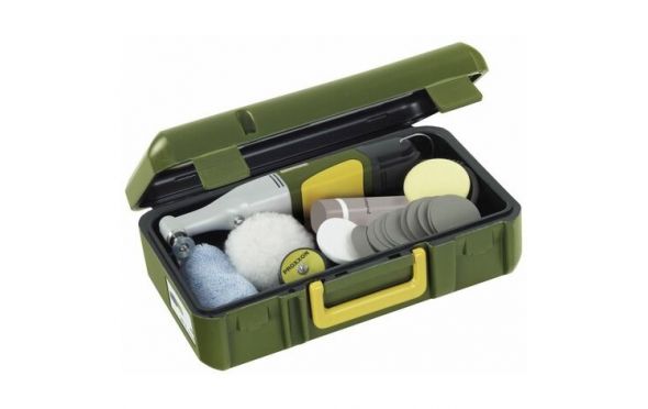 Για τέλειες επιφάνειες ακόμα και σε πολύ μικρά σημεία: Για φινίρισμα επιφανειών, καθάρισμα, απομάκρυνση σκουριάς, για φινίρισμα δαχτυλιών μετά από βερνίκωμα. Ισορροπημένο ειδικό μοτέρ, ισχυρό, αθόρυβο και με μεγάλη διάρκεια ζωής. Αθόρυβο γρανάζι με κάλυμμα συμπαγούς αλουμινίου και έλεγχος συνεχόμενων μεταβλητών ταχυτήτων (ηλεκτρονικά ελεγχόμενων) για χαμηλή και σταθερή ταχύτητα ακόμα και κατά τη διάρκεια υψηλής πίεσης επαφής. Κάλυμμα από ενισχυμένο φάιμπεργκλας πολυαμιδίου με μαλακά μέρη. Ασφαλής αποθήκευση σε θήκη κατασκευασμένη από υψηλού βαθμού πολυπροπυλένιο με αυθεντικό εξοπλισμό για άμεση χρήση.