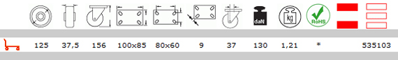 Κατάλληλο για καρότσια με ελαφρα φορτια, επίσης σε δαπεδα με ανωμαλω εδαφος. εσωτερική και εξωτερική χρηση.Συνιστατε σε εφαρμογές: καροτσάκια εργαλείων, καροτσάκια για βιομηχανική χρηση, μικρές κινητές σκαλωσιές, καδους κτλ.Ρόδα:ελαστικό πέλμα.Βάση:γαλβανιζε.