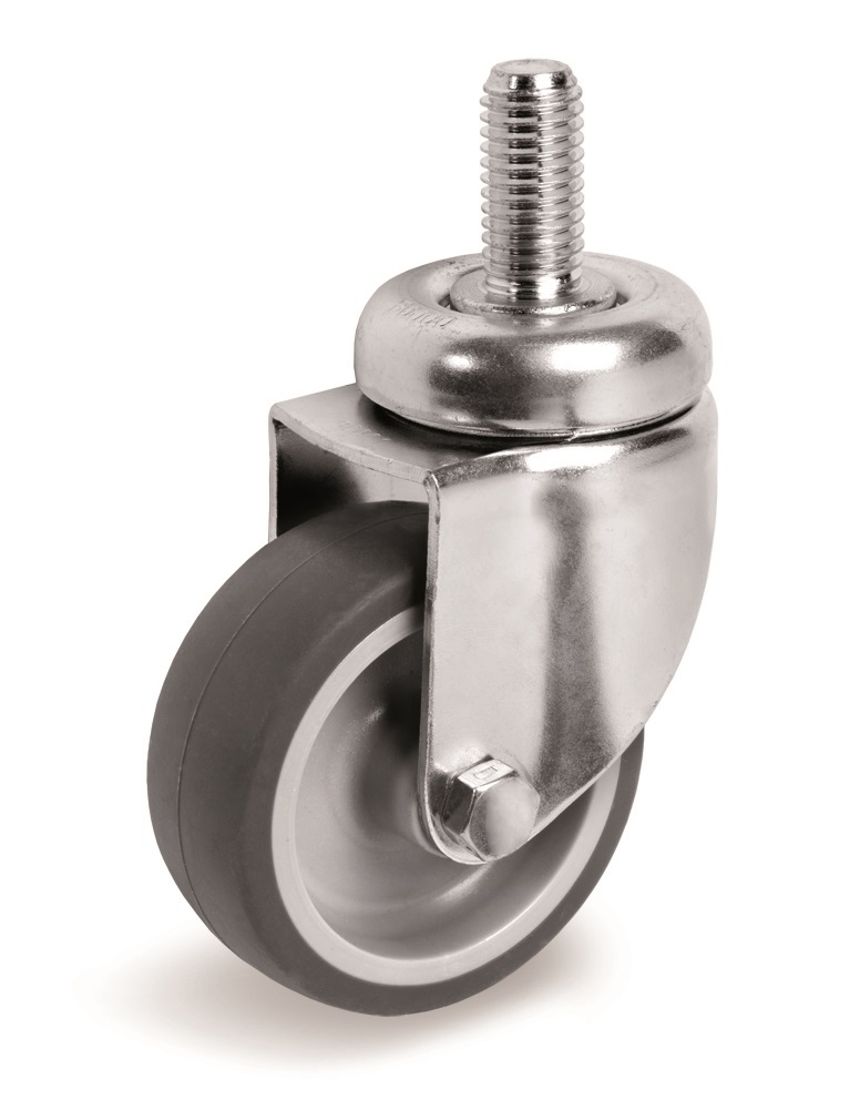 Ρόδα Ø 60 Πολυπροπυλένιου περιστρεφόμενη με βίδα. Θερμοπλαστικοί non-marking από γκρι ελαστικό και πυρήνα από πολυπροπυλένιο.