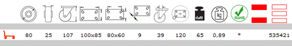 Κατάλληλο για καρότσια με ελαφρα φορτια, επίσης σε δαπεδα με ανωμαλω εδαφος. εσωτερική και εξωτερική χρηση.Συνιστατε σε εφαρμογές: καροτσάκια εργαλείων, καροτσάκια για βιομηχανική χρηση, μικρές κινητές σκαλωσιές, καδους κτλ.Ρόδα:ελαστικό πέλμα.Βάση:γαλβανιζε.