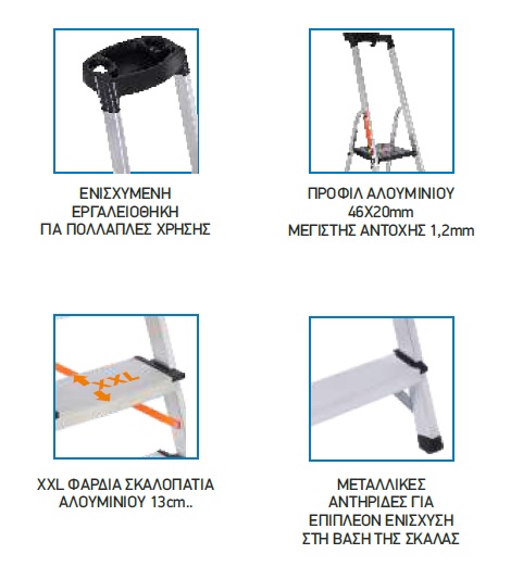 - Η σκάλα παρέχει όλες τις ευρωπαϊκές προδιαγραφές ΕΝ131.