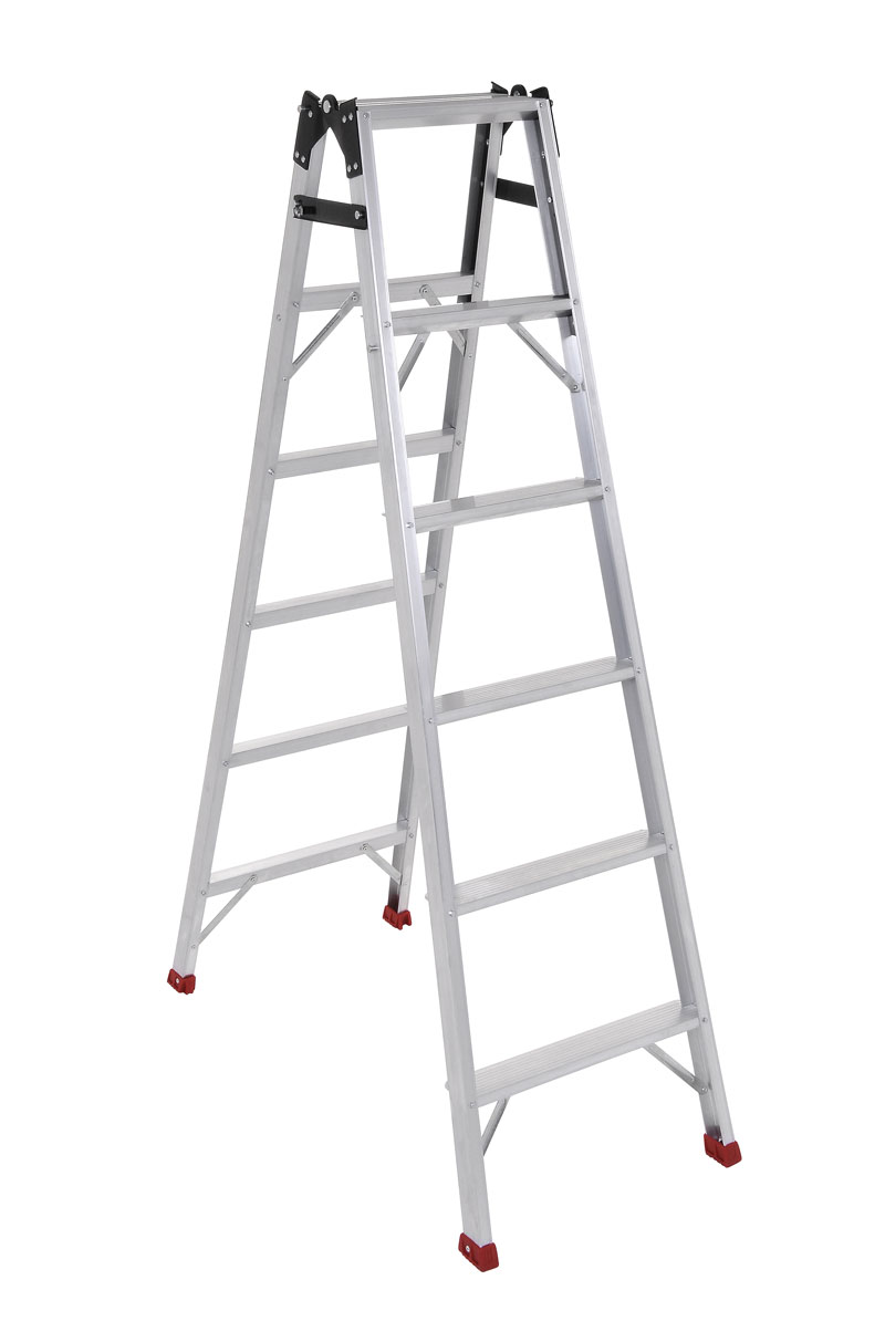 Υψηλής σκληρότητας κατασκευή αλουμινίου με πάχος 1,7mm για επαγγελματική & οικιακή χρήση.Διαγραμμισμένα σκαλοπάτια για ασφαλές πάτημα.Ατσάλινες βίδες με κόντρα παξιμάδια τύπου αεροσκαφών με νάιλον επένδυση.Λαστιχένια πέλματα με ένωση ασφαλείας.Ελαφριά, πρακτική στη μεταφορά και αναδίπλωση.Οι σύνδεσμοι ράβδοι δίνουν δυνατότητα εύκολης και γρήγορης αλλαγής θέσεως σε ευθεία.Μέγιστη αντοχή 150kg.Η σκάλα κατασκευάζεται σύμφωνα με τα ευρωπαϊκά πρότυπα EN131.