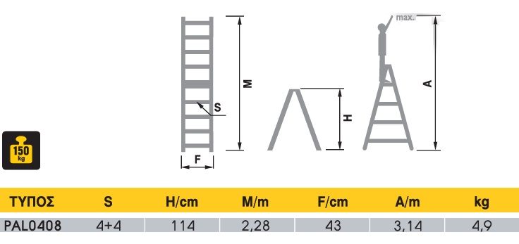 Σκάλα Αλουμινίου Διπλού Συνδιασμού PAL 4+4 Σκαλιά
