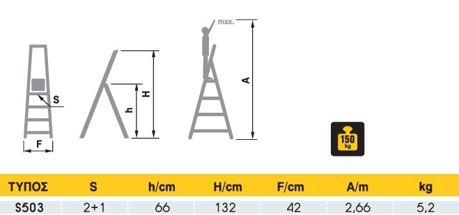 • Η σκάλα κατασκευάζεται σύμφωνα με τα ευρωπαϊκά πρότυπα EN131.