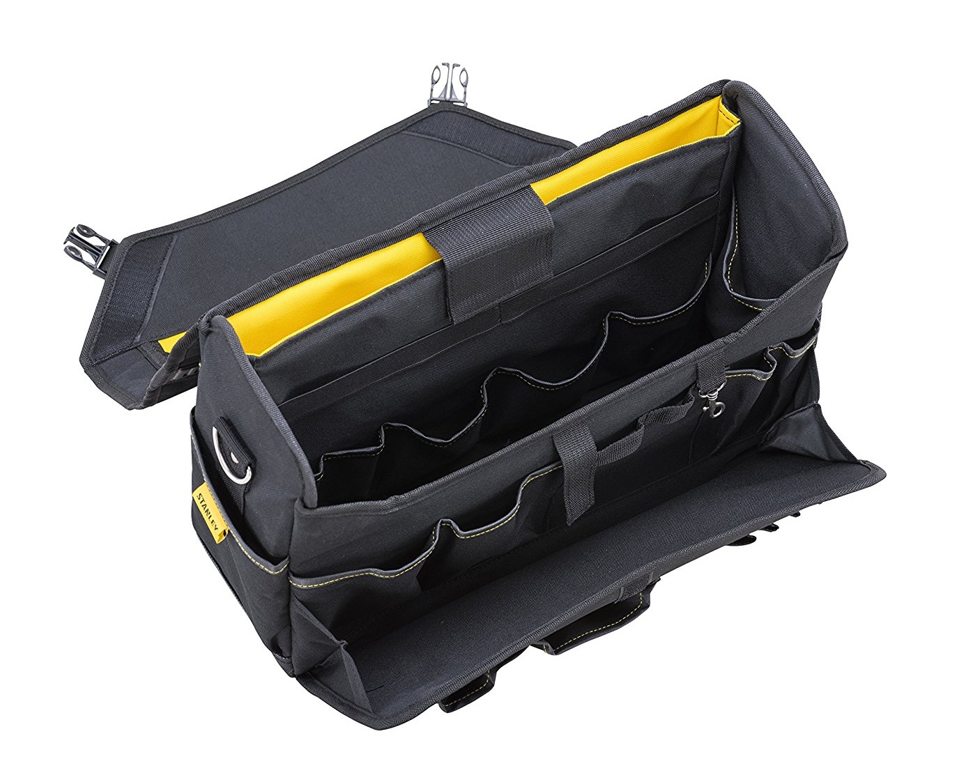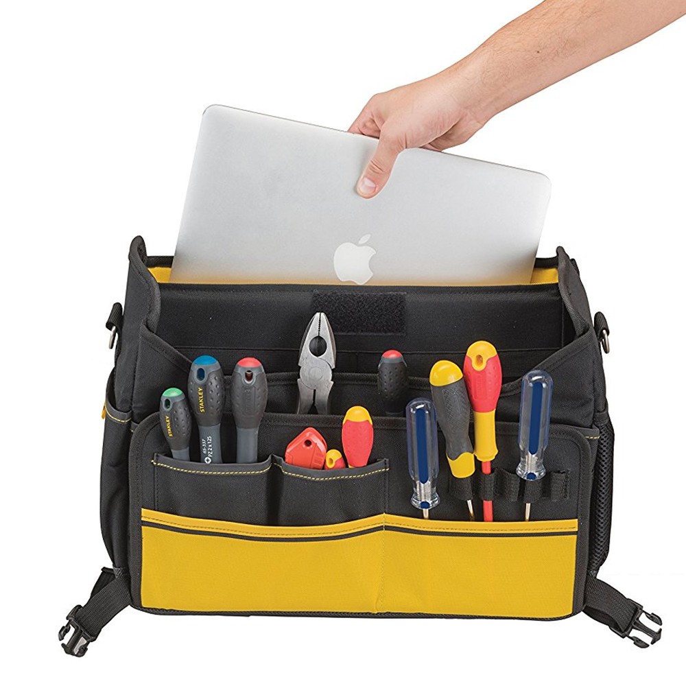 - Η τσάντα είναι συμβατή με τους τροχήλατους εργαλειοφορείς της Stanley χάρη στο λάστιχο που διαθέτει στην πλάτη.