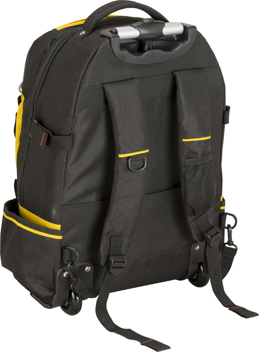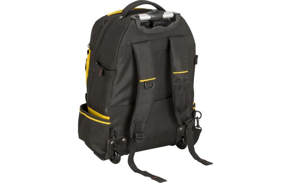 Σακίδο - εργαλειοθήκη πλάτης με ρόδες και τηλεσκοπική λαβή, για εύκολη και ξεκούραστη μεταφορά. Θήκη για ηλεκτρικά εργαλεία Εσωτερικός διαιρέτης με αφαιρούμενη παλέτα εργαλείων για τη βέλτιστη οργάνωση του χώρου. Ανθεκτικό ύφασμα και το διπλό κλείσιμο με φερμουάρ. Άκαμπτο σχήμα και άφθονος χώρος αποθήκευσης. Σε χρώμα μαύρο - κίτρινο