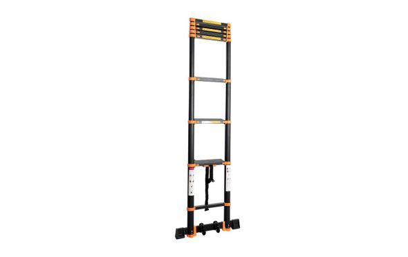 Τηλεσκοπική σκάλα αλουμινίου ηλεκτροστατικής βαφής χρώματος μαύρου.