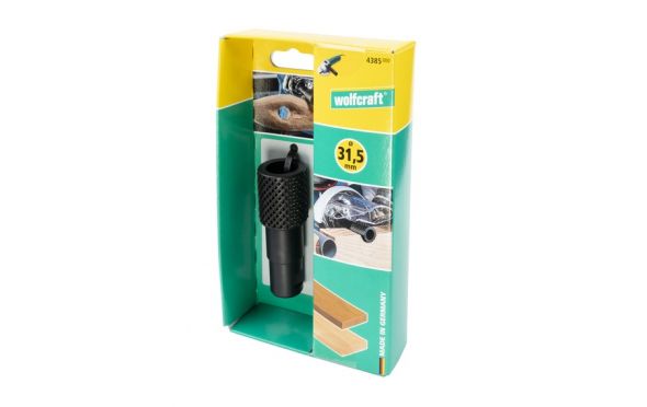Η κυλινδρική ράσπα Ø 31,5 mm για γωνιακούς τροχούς είναι ένα εξάρτημα υψηλής απόδοσης για το ράσπισμα εσοχών, για την αφαίρεση επιφανειακού υλικού ή για το στρογγύλεμα γωνιών, ιδανική για χρήση στον βιοτεχνικό και στον καλλιτεχνικό τομέα. Με το σπείρωμα M14 είναι συμβατή με τους κοινούς γωνιακούς τροχούς μεγέθους 115 ή 125. Η κυλινδρική ράσπα αποτελείται από στιβαρό χάλυβα C45 και είναι σχεδιασμένη ειδικά για χρήση σε μαλακό και σκληρό ξύλο χωρίς εγκλείσματα. Ξεχωρίζει εξαιτίας της επιθετικής αφαίρεσης υλικού και της εξαιρετικά γρήγορης προόδου των εργασιών. Για τη βέλτιστη δυνατή ασφάλεια κατά την εργασία πρέπει ο δίσκος φρεζαρίσματος να χρησιμοποιείται πάντα με το κάλυμμα αναρρόφησης της wolfcraft (κωδ. προϊόντος 439900).