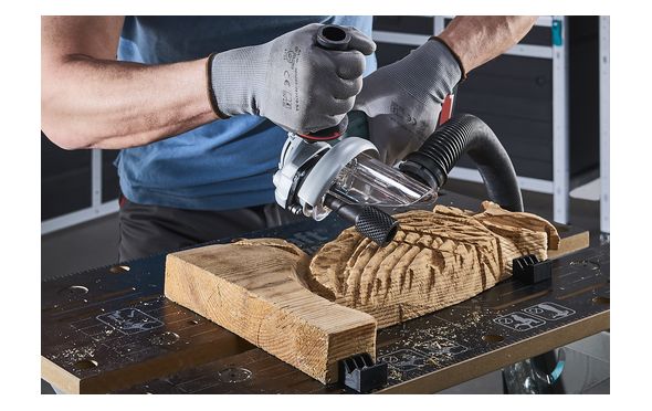 • Για τη βέλτιστη δυνατή ασφάλεια κατά την εργασία πρέπει ο δίσκος φρεζαρίσματος να χρησιμοποιείται πάντα με το κάλυμμα αναρρόφησης της wolfcraft (κωδ. προϊόντος 439900).