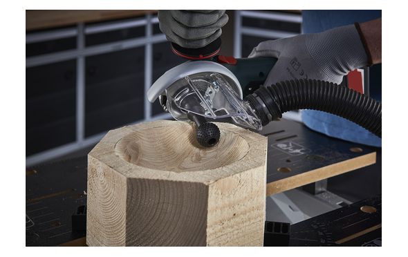 - Ξεχωρίζει εξαιτίας της επιθετικής αφαίρεσης υλικού και της γρήγορης προόδου των εργασιών. Χάρη στον εργονομικό σχεδιασμό για εργασία με τα χέρια ελεύθερα μπορείτε να διαμορφώσετε ελεγχόμενα, π.χ. ξύλινα γλυπτά.
